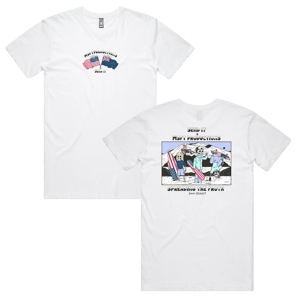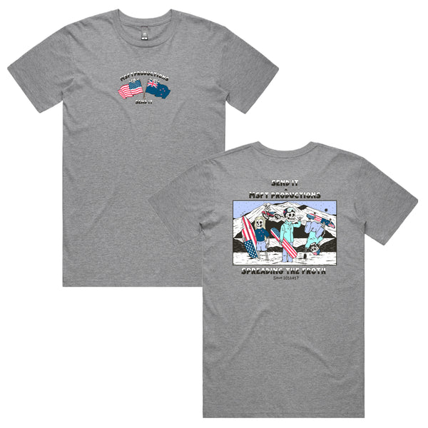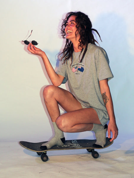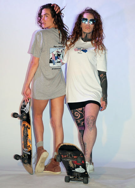 -Neck ribbing, side seamed, shoulder to shoulder tape, double needle hems, preshrunk to minimize shrinkage