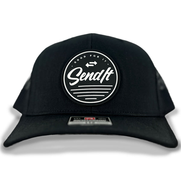 Black trucker hat with a 'Send It' PVC patch on the front.