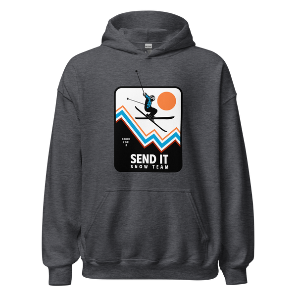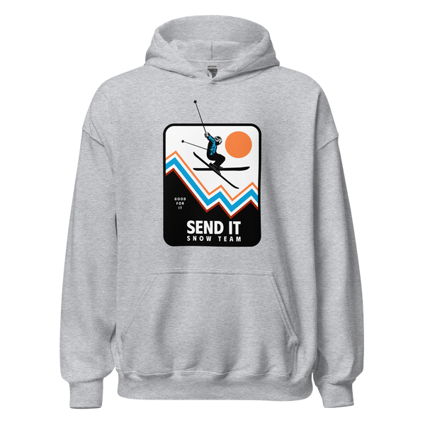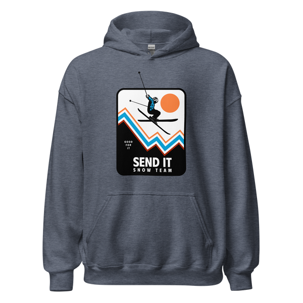Meet the Send It Snow Team Hoodie – your cozy sidekick for winter adventures! With a mix of 50% pre-shrunk cotton and 50% polyester, it's the perfect blend of comfort and durability. Air-jet spun yarn keeps it soft and pill-free, ensuring you're ready to send it in style. The double-lined hood, athletic rib-knit cuffs, and front pouch pocket make it your go-to winter essential. Sourced from cool places like Bangladesh, Nicaragua, Honduras, or El Salvador, it's not just a hoodie; it's a statement. Why settle for ordinary when you can send it in the snow with flair? Grab yours now and let winter envy your style.