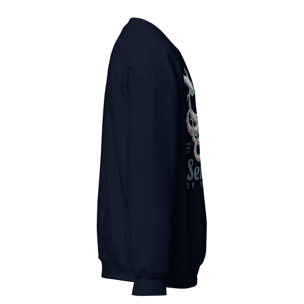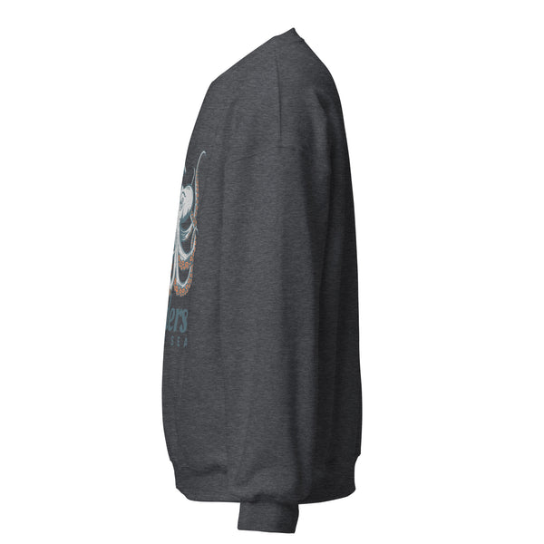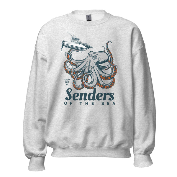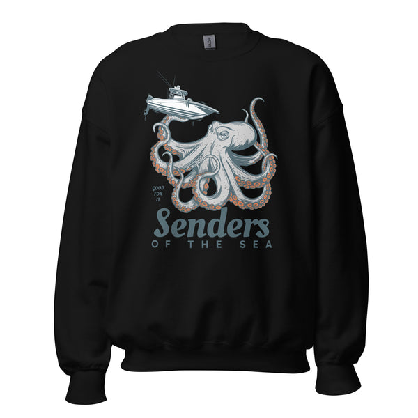 Conquer the deep in style with the Senders of the Sea Crewneck Sweatshirt! Featuring a striking logo of a giant octopus gripping a boat, this sweatshirt captures the spirit of bold exploration and the untamed power of the ocean. Perfect for adventures on and off the water, its premium construction ensures warmth, comfort, and durability wherever your journey takes you.