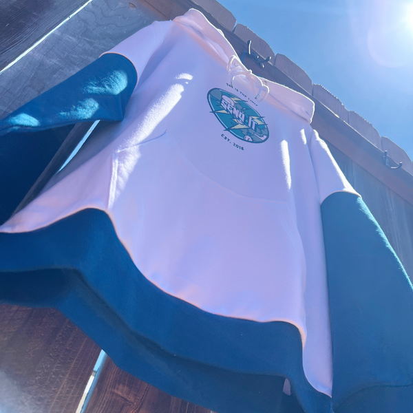 This hoodie is one-of-a-kind and a limited drop only. Sky is the limit. Embroidered logo.