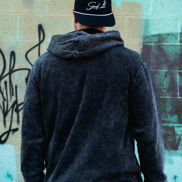This one’s built different. The Send It Stone Wash Hoodie brings that roughed-up, vintage vibe straight out of a tour van and onto your back. Each piece is mineral washed for a one-of-a-kind finish, giving it the same worn-in feel you love in your favorite old band tee—but upgraded.