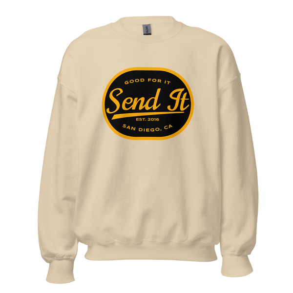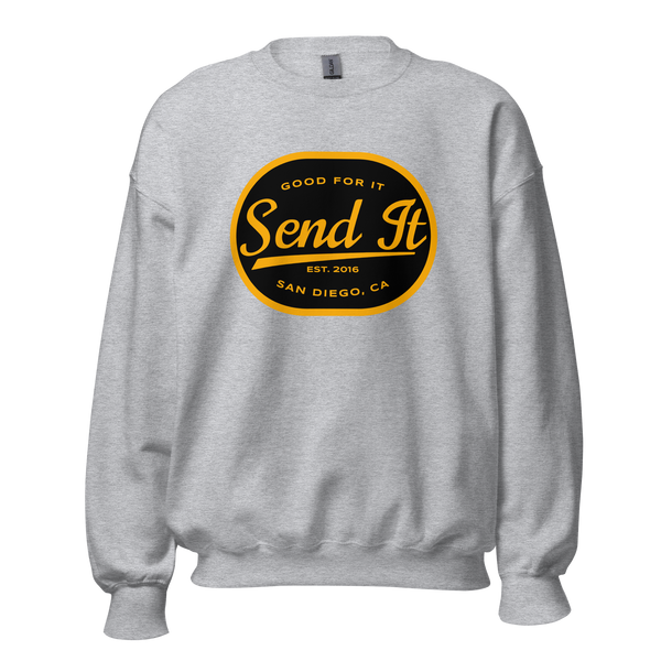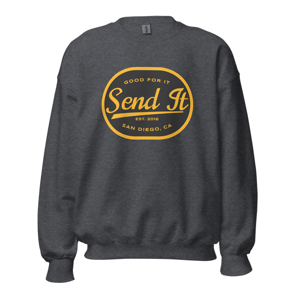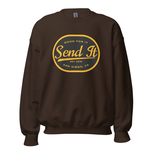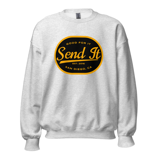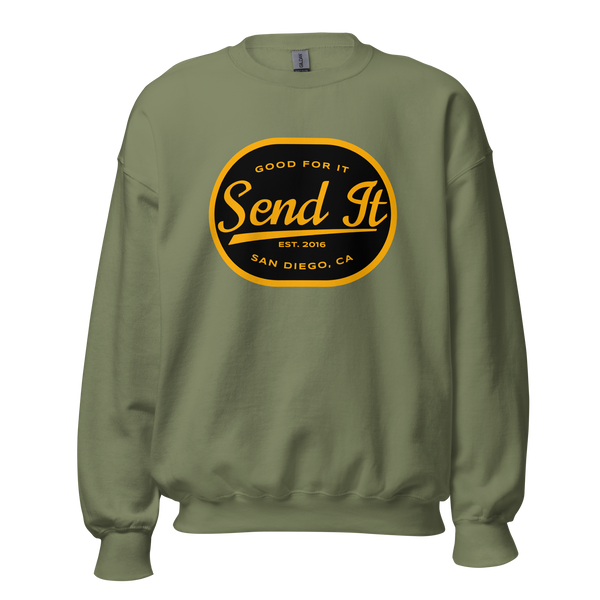 Whether you’re layering up for outdoor adventures, staying cozy at home, or repping the Send It vibe, this crew neck sweatshirt has got you covered. Its durable design and versatile fit make it the perfect addition to your wardrobe.