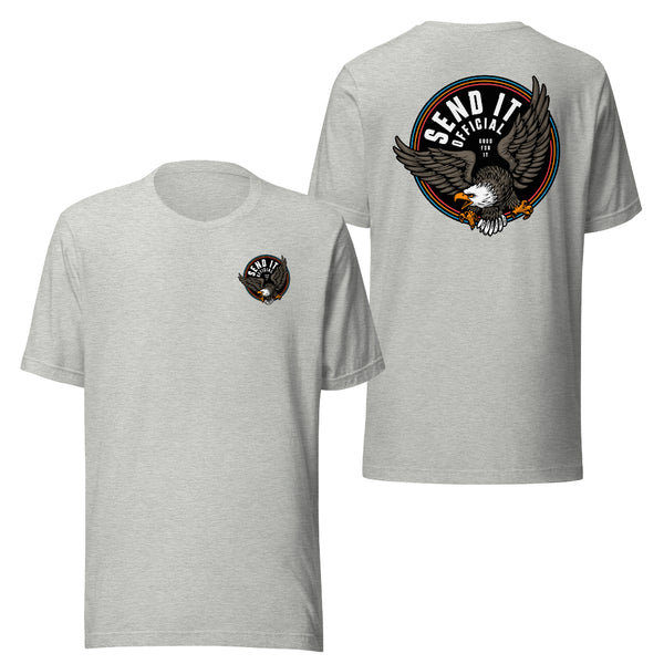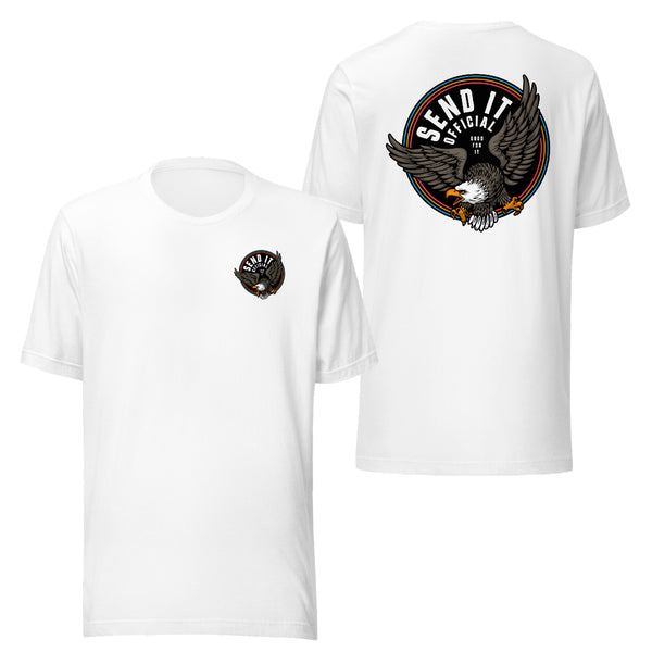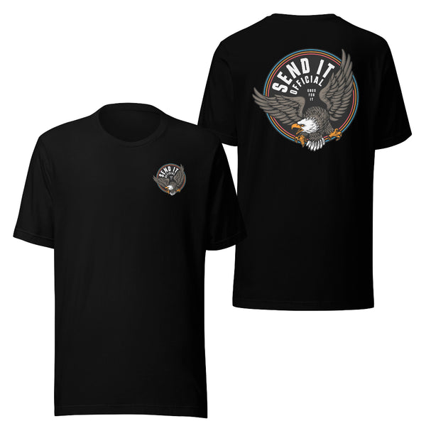Introducing the Send It Eagle Tee: because even bald eagles envy the freedom this shirt gives you. Soft as a cloud and bolder than a fireworks display, this tee is your go-to wingman for every adventure. Channel your inner daredevil and let this shirt be your symbol of soaring to new heights (even if it's just conquering that pile of laundry). Get ready to spread your wings, make America proud, and send it like the true majestic legend you are!