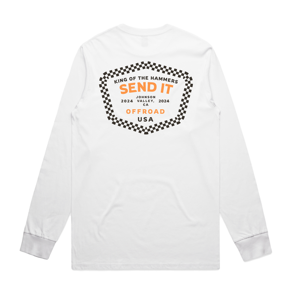 THE Send It Official Offroad Long Sleeve featured at King of the Hammers 2024! We've unleashed this extended release just for you after it flew off the shelves at the event. With a regular fit, crew neck, and crafted from 100% combed cotton (with a touch of mischief in the heather), this long sleeve is as durable as it is comfortable. Complete with features like shoulder-to-shoulder tape and double-needle hems, it's ready to tackle any off-road adventure. Grab yours now and show the world you're ready to send it in style!