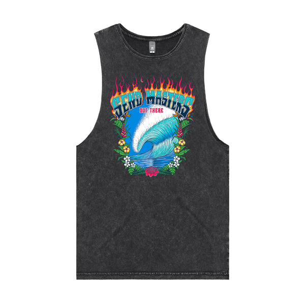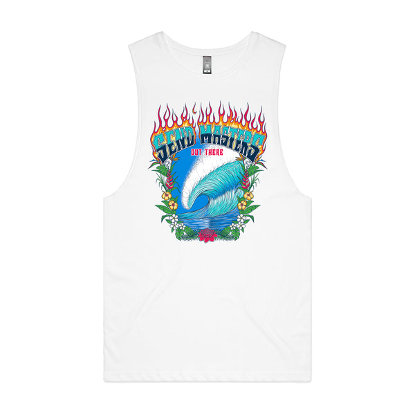 Whether you're shredding the gnarliest breaks, chilling on the beach with your crew, or simply embracing the laid-back surfer lifestyle, the Send Masters Barnyard Tank is your go-to choice. It's like a secret signal to fellow wave riders that you're part of an exclusive club, where stoke is always high and the ocean is your playground.